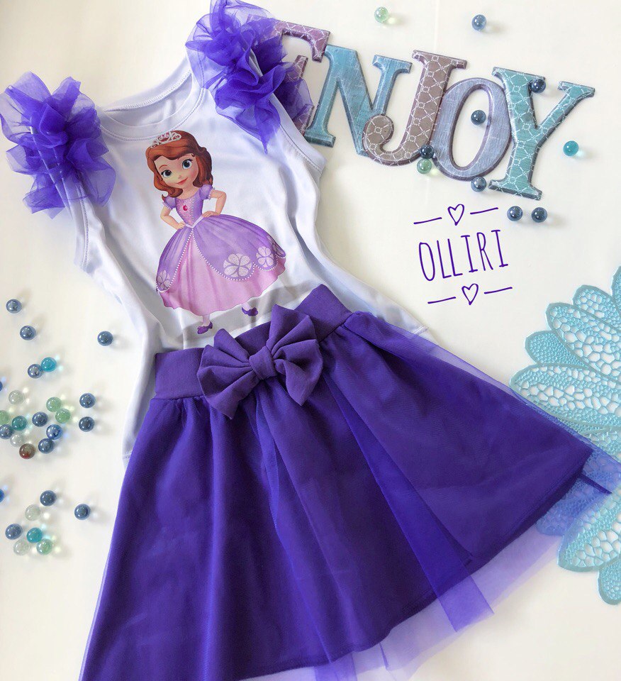 Футболка с аппликацией в центре , воланы фатин, цвета по запросу
