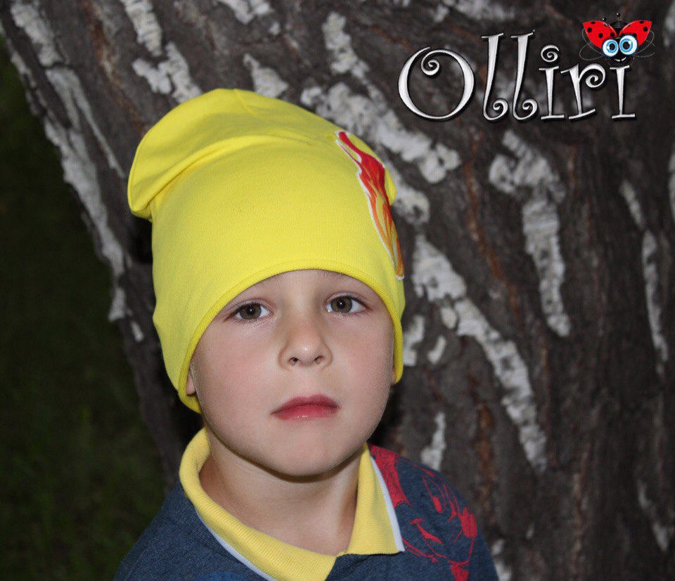 Шапка "Желтая с аппликацией огонь "