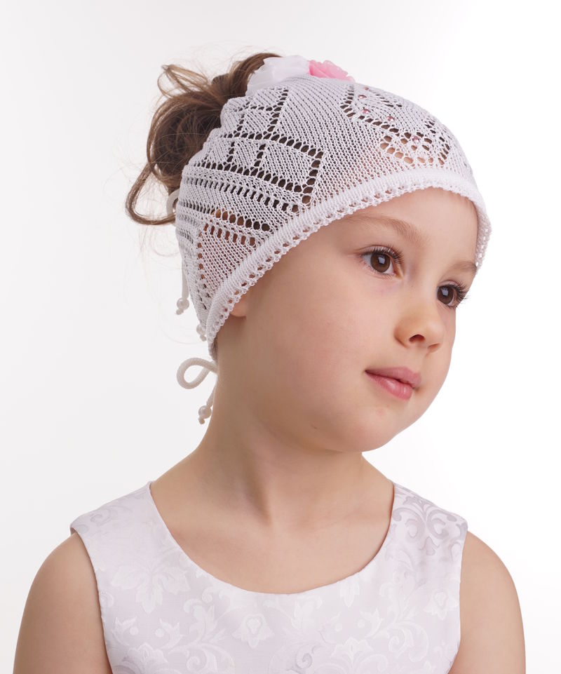 Макушка шапочки собрана на шнурочек, что позволяет выставить наружу "хвостик" обладательнице длинных волос. Украшения - три розы ручной работы. По низу шапочки вставлен эластичный шнур с бусинками-наконечниками, который позволяет регулировать размер по ширине. Модель очень комфортна и приятна в носке, позволяет голове "дышать" даже в самую жаркую погоду (температура +20).